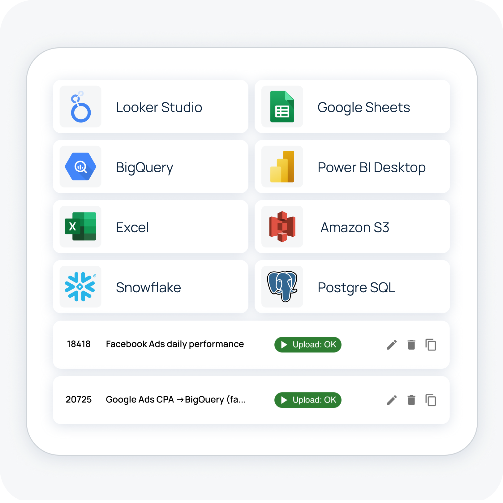 Easily blend data from multiple sources and make it available where your team needs it, be it Looker Studio, Power BI, BigQuery, Google Sheets, or another destination.