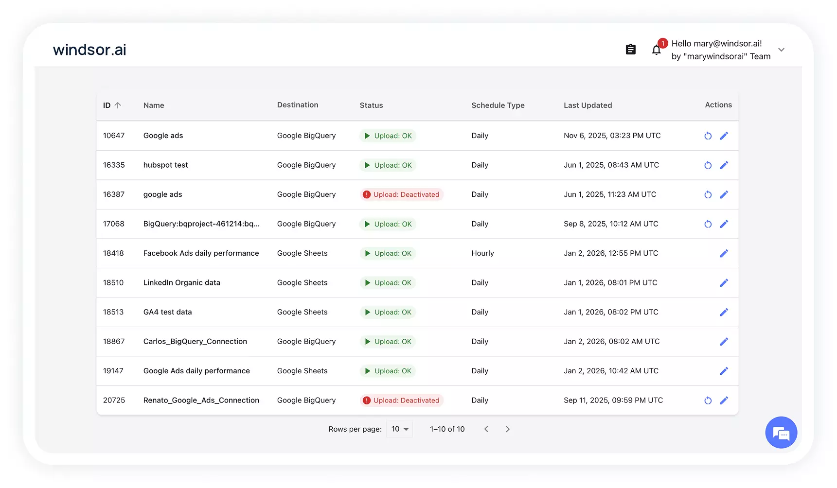 Windsor.ai automates cross-platform data integration with a no-code ETL/ELT platform that handles schema mapping, updates, and near real-time syncs.