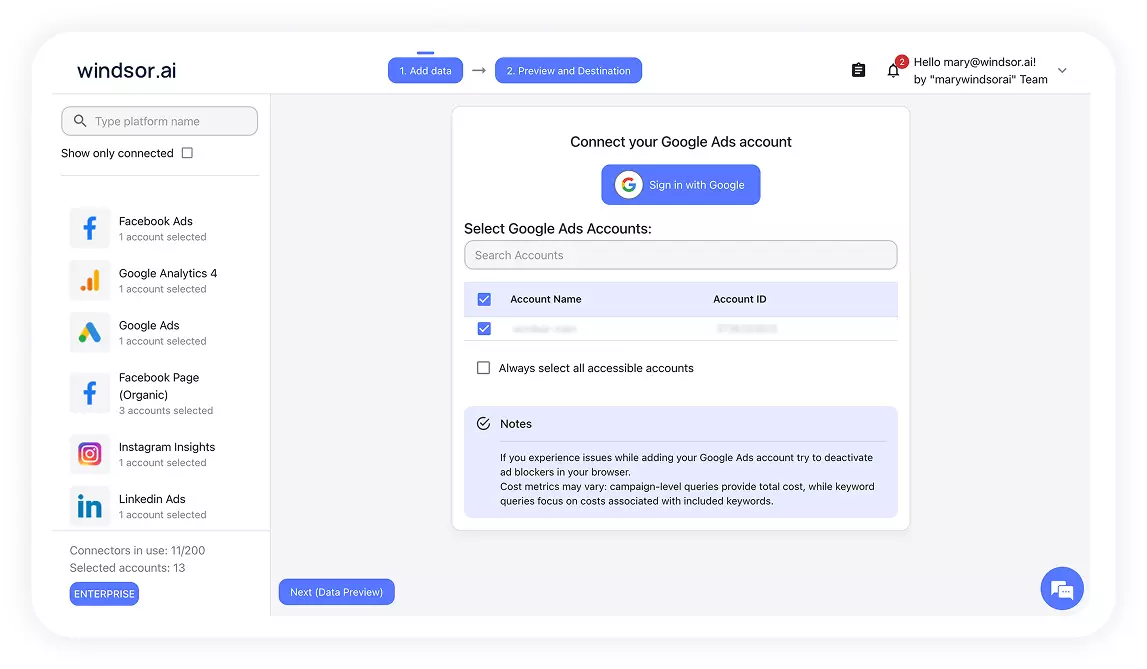 Get started with Windsor.ai connectors in under 60 seconds