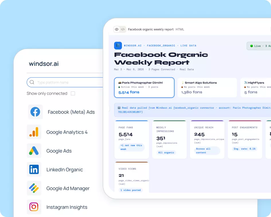 Turn your data into a strategic asset. Get instant insights across all your platforms with Windsor.ai