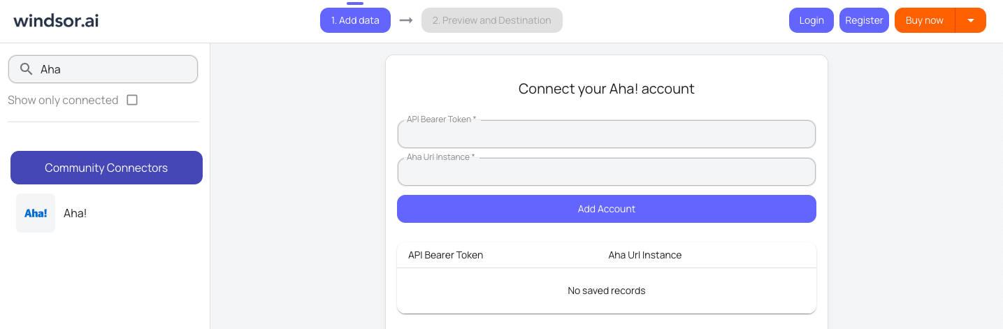 Choose Aha! as your data source and grant access to Windsor.ai.