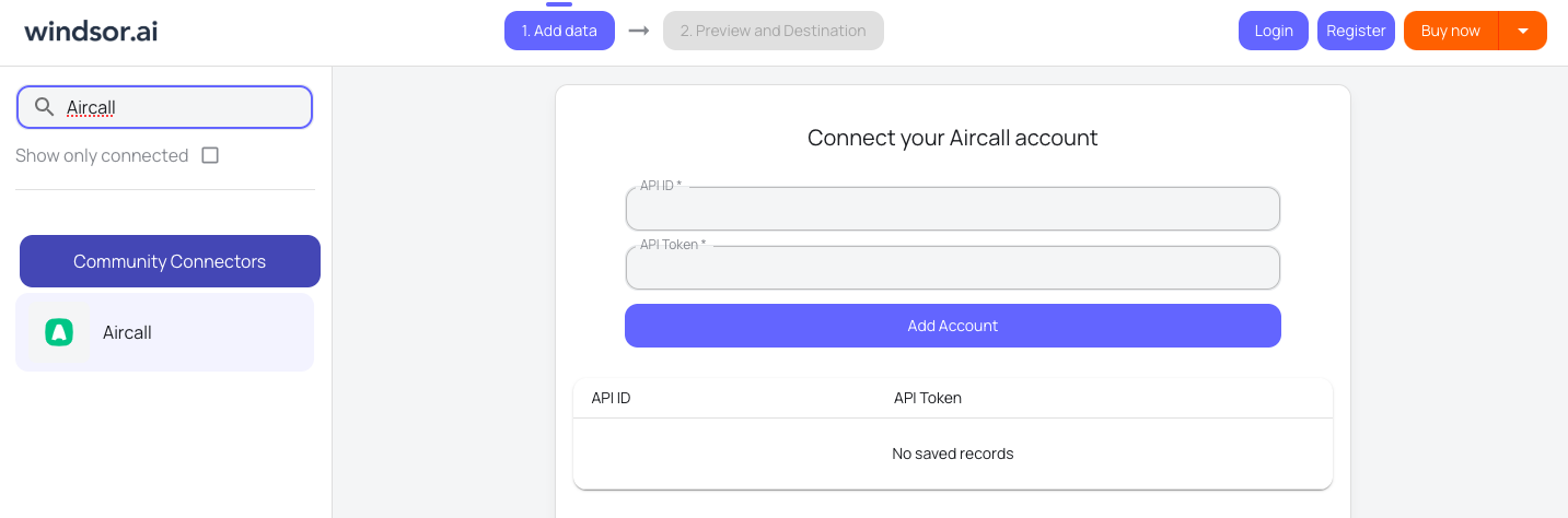 Choose Aircall as your data source and grant access to Windsor.ai.