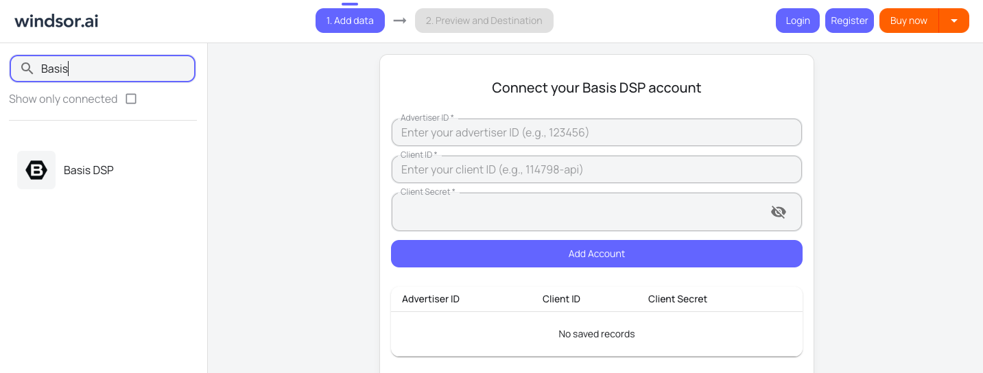 Choose Basis DSP as your data source and grant access to Windsor.ai.