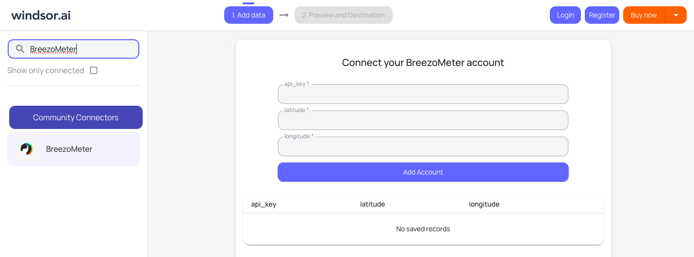 Choose BreezoMeter as your data source and grant access to Windsor.ai.