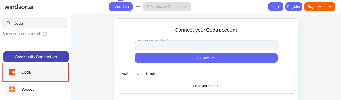 Choose Coda as your data source and grant access to Windsor.ai.
