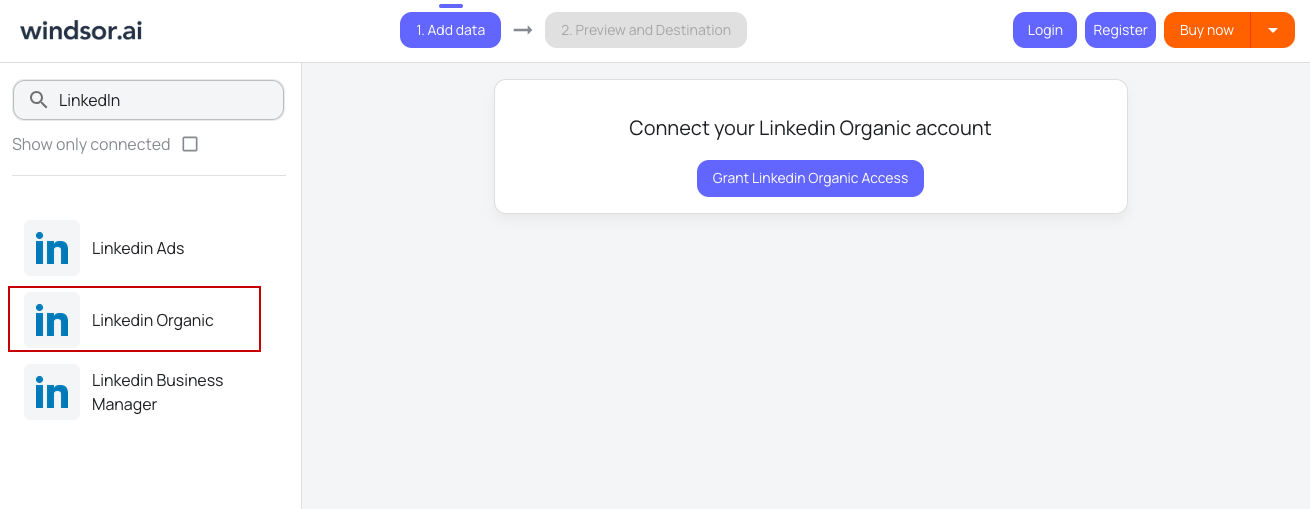 Import your LinkedIn Pages data into any destination using Windsor.ai.