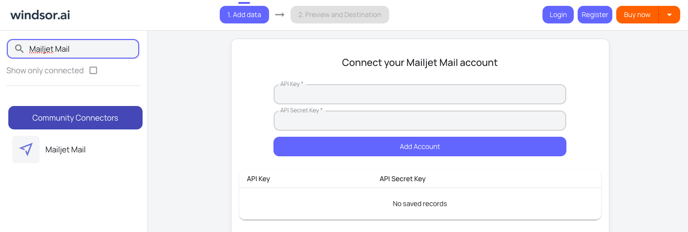 Choose Mailjet as your data source and grant access to Windsor.ai.