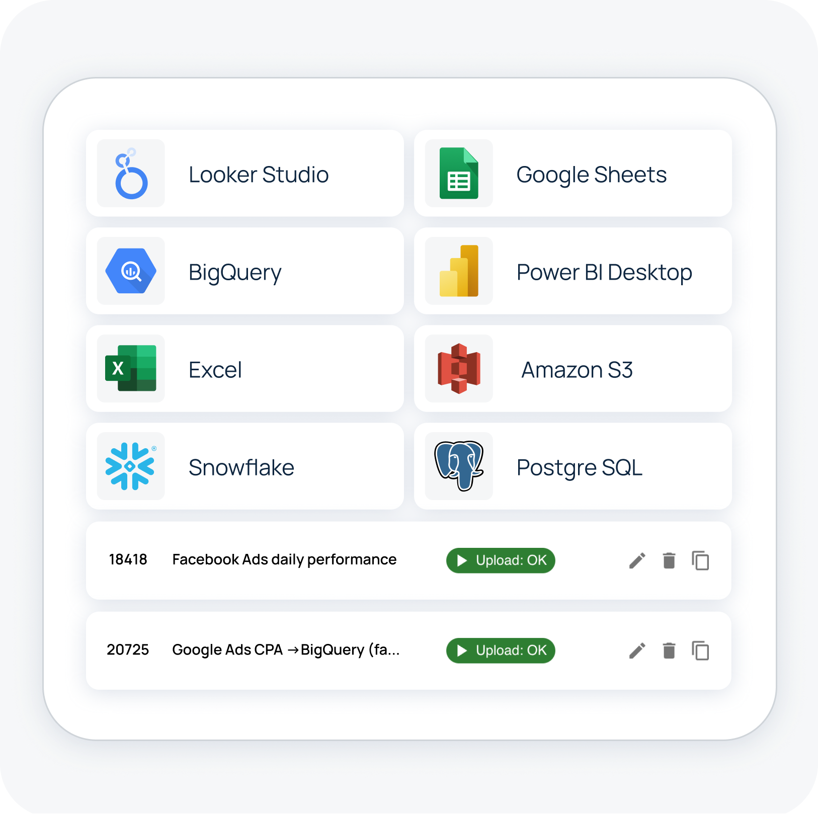 Easily blend data from multiple sources and make it available where your team needs it, be it Looker Studio, Power BI, BigQuery, Google Sheets, or another destination.