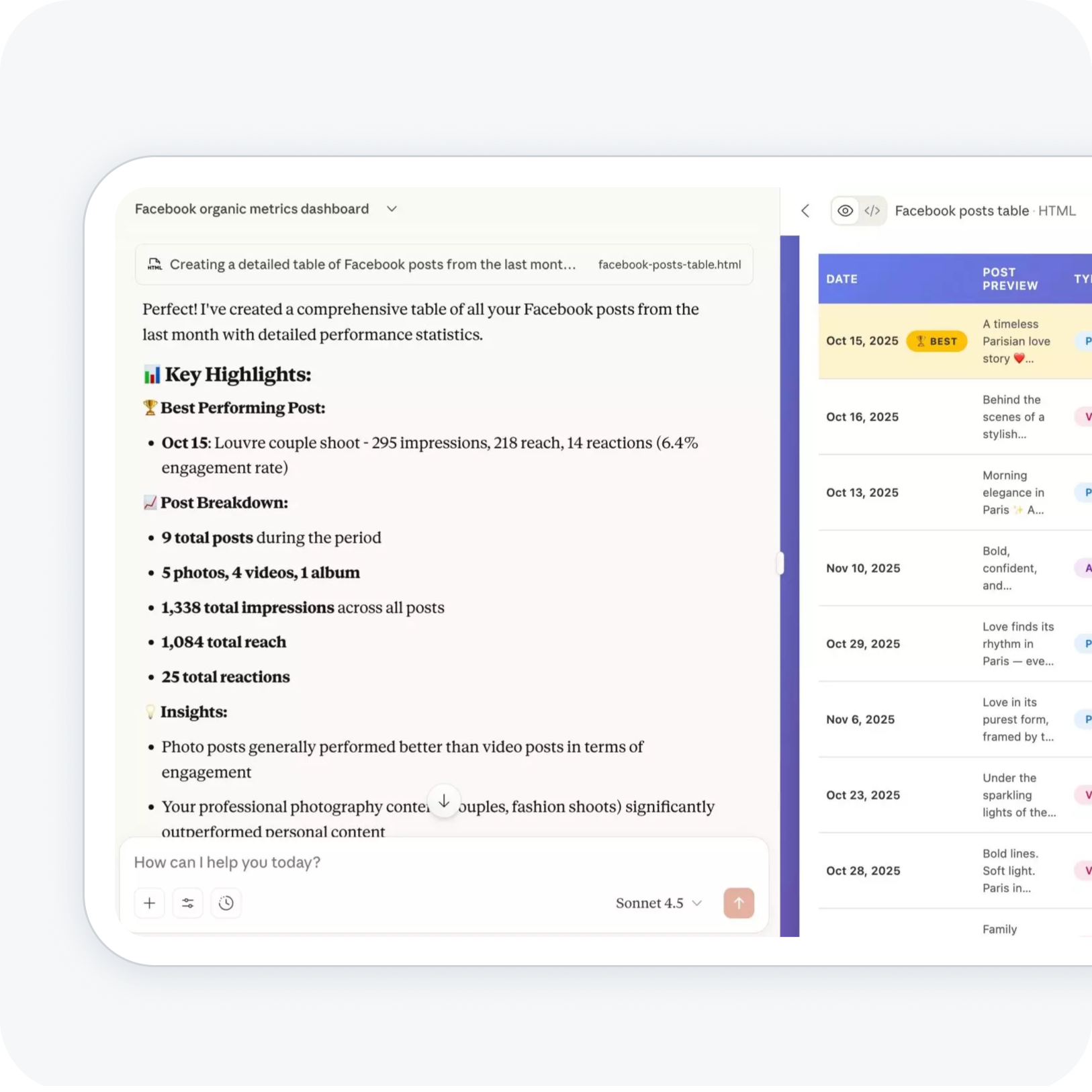 Connect your data to ChatGPT, Claude, or other AI chats to unlock deeper insights and create visual summaries in seconds.